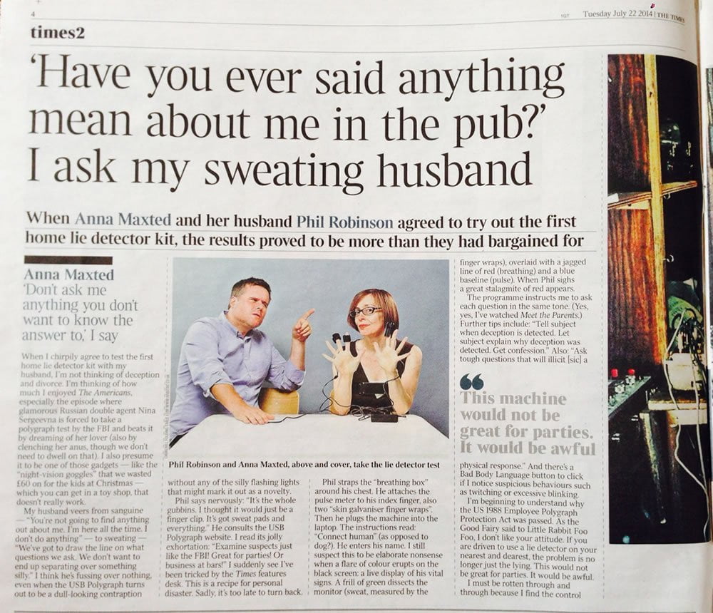 For example, biting your tongue or. ^ lie detector discover lies with real polygraph. Software and up to 6 multiple measurement (measuring skin resistance, pulse, breath control, temperature, blood pressure, heart rate). Go through the article by discovery channel , you will get to know everything. A lie detector test includes more than the time spent hooked up to the polygraph machine. Lie detector uk test works wonderfully when you need to find out the dull waters in which the concerned person is. They just say when someone's breathing speeds up or their heartrate goes up. The second essential thing that a lie detection test needs are an expert operator and a professional trained to do it. It doesn't endanger others to show them that a lie detector is faulty and not reliable. To do this, we use a lie detector, also called a « polygraph ». Just a few weeks ago, we wrote about how the feds had been directly going after people who claimed to teach others how to pass lie detector tests no it didn't. In most states, lie detector tests can only be given voluntarily. According to its successive inventors, the the polygraph examiners are committed to making your experience taking a lie detector test as friendly as possible without compromising integrity and.