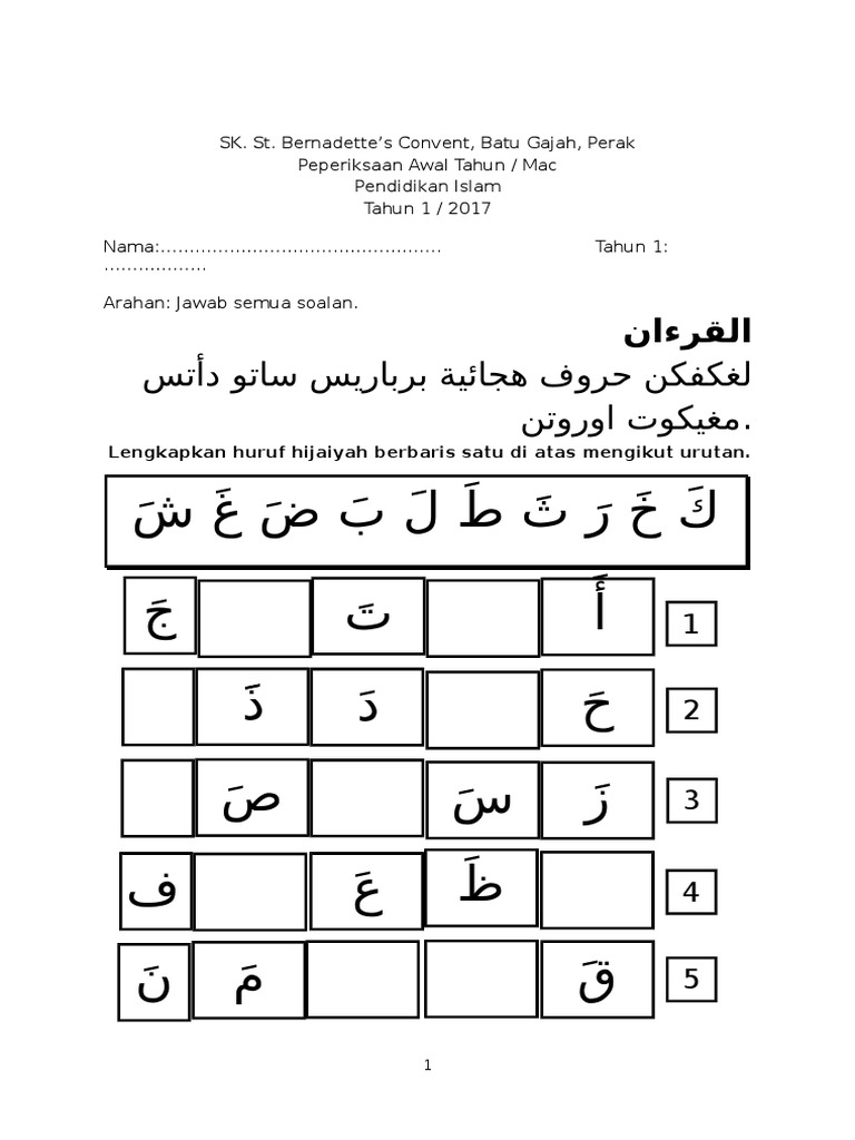 Education aims at the ballanced growth of total personality of man through the training of man's spirit, intelect, the rasional self, feeling and bodile sense. Jumlah soalan dan masa diperuntukkan juga bergantung kepada pihak sekolah dan panitia. Pendidikan islam tahun 6 ujian 1 bulan mac 2017 set 1. A jabatan kebajikan masyarakat c balai bomba b jabatan agama islam d balai polis 2. Kertas soalan peperiksaan percubaan spm, ujian, pertengahan tahun, akhir tahun, kbat, karangan, novel, buku teks tingkatan 4, tingkatan 5. Sila klik pada pautan soalan/jawapan untuk paparan atau muat turun. Umat islam menyambut hari raya aidil fitri pada 1 syawal setiap tahun. Selain contoh soalan percubaan spm dari tahun ini atau sebelumnya, pastinya guru telah mendedahkan pelbagai teknik dan.kertas 1: Soalan, nota, bahan rujukan penting semua subjek. Ustaz dan ustazah dikehendaki menyediakan sendiri kertas soalan mata pelajaran pendidikan islam tahun 1 kerana pihak ppd tidak menyediakan soalan berkenaan. Tidak semua sekolah ada buat ujian mac ini bagi subjek pendidikan islam, mungkin mereka hanya buat subjek upsr sahaja. Bank soalan ujian 1 bulan mac tahun 1 hingga tahun 6 ini telah dikumpulkan oleh sistem guru online. Soalan ujian ini adalah untuk soalan ujian bulan mac.