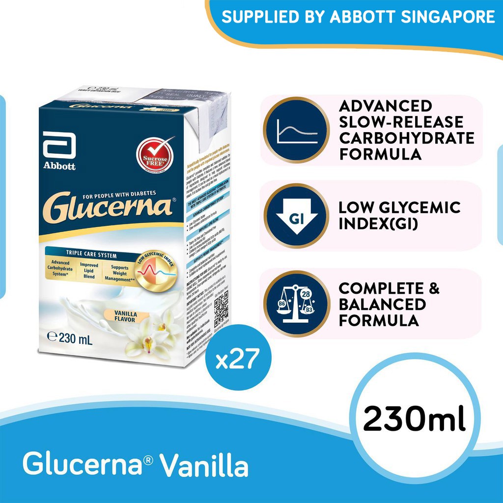 Pour 200ml of cool boiled water into a glass. Glucerna® triple care is a complete and balanced nutrition supplement scientifically formulated to support dietary and weight management in people with diabetes. Glucerna triple care is a convenient, appropriate, and healthy alternative to skipped meals or unhealthy meals and snacks that have high caloric levels and low density of nutrients. Glucerna sr triple care is a specialized nutrition that features a unique blend of ingredients, clinically proven to help manage blood sugar, prevent cardiovascular risks and maintain a normal weight. Glucerna liquid and glucerna triple care are specifically designed for people with prediabetes, diabetes, or people trying to manage.