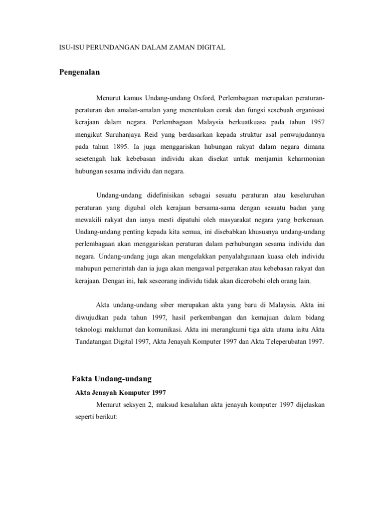 Isu Perundangan Dlm Zaman Digital from img.pdfslide.tips The digital signature act 1997 (malay: This edition was published in 1997 by percetakan nasional malaysia in [kuala lumpur. Suruhanjaya komunikasi dan multimedia malaysia (skmm) diminta. Akta tandatangan digital 1997 mengandungi segala pindaan hingga 1 januari 2006. Akta tandatangan digital 1997 adalah akta yang dibuat untuk memberi keyakinan dan menggalakkan orang awam melakukan transaksi elektronik yang selamat di peringkat tempatan dan antarabangsa. Di bawah akta ini, tandatangan digital menyediakan sistem verifikasi untuk mengesahkan identiti penghantar dan mesej yang dihantar. Akta tandatangan digital 1997), is a malaysian laws which enacted to make provision for, and to regulate the use of, digital signatures and to provide for matters connected therewith. Akta tandatangan digital 1997 akta 562 merangkumi pindaan terakhir a1121 2001.